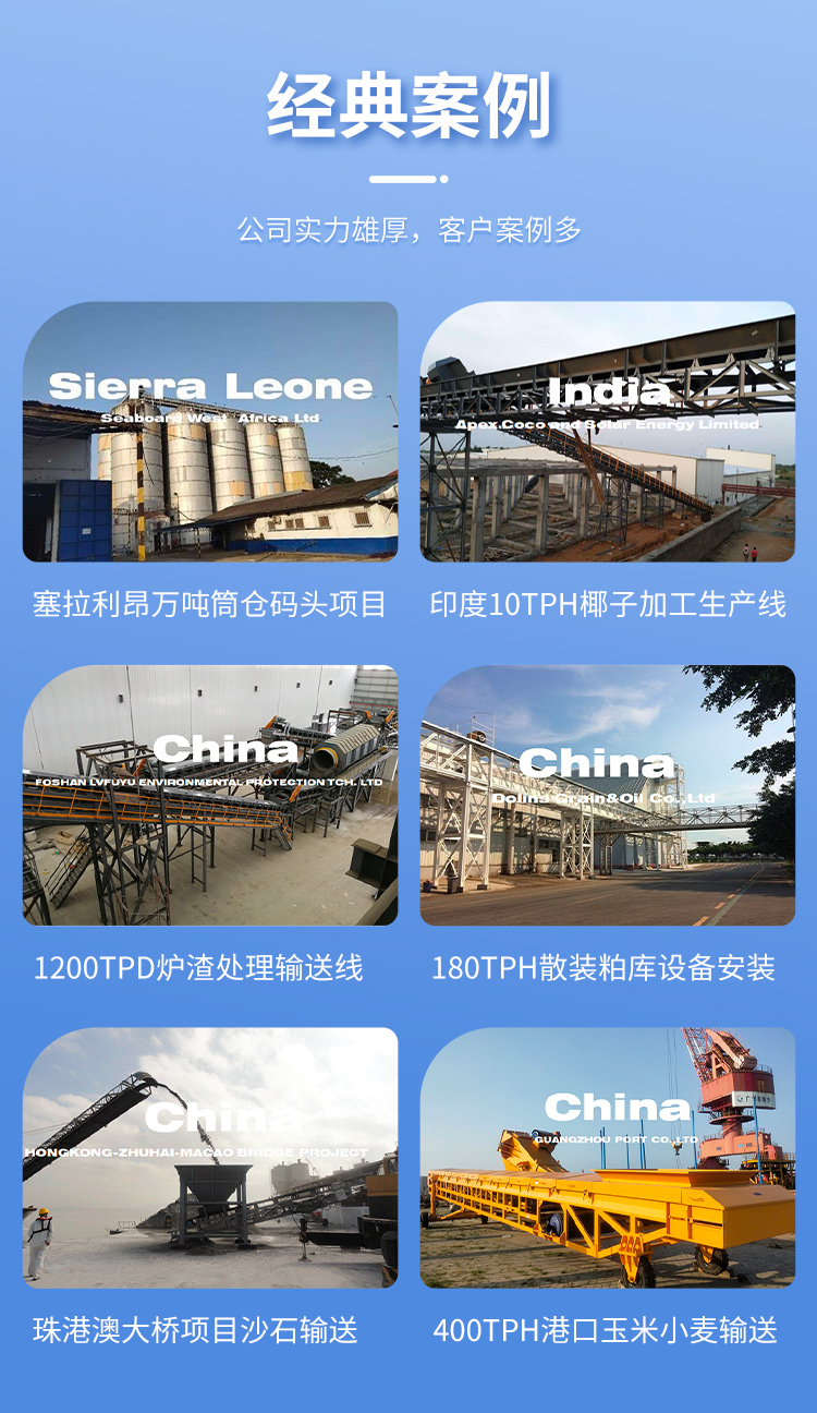 3、可以单机输送,也可多机组合成水平或倾斜的运输系统来输送物料